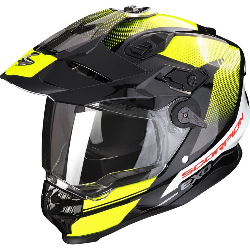 El casco Scorpion ADF-9000 Air Trail está diseñado para su uso en motocicletas. Su construcción incluye una carcasa de policarbonato, que combina ligereza con resistencia. Cuenta con un sistema de ventilación que permite la circulación de aire, facilitando la refrigeración durante su uso. El interior del casco es extraíble y lavable, lo cual permite mantener la higiene del producto. Este modelo incluye un visor que ofrece protección contra rayos UV y elementos externos. El cierre se realiza mediante un sistema de anclaje de doble D, que asegura un ajuste adecuado. El Scorpion ADF-9000 Air Trail es compatible con varios sistemas de comunicación, aunque estos se deben adquirir por separado. Su diseño integra una pantalla antiarañazos y la posibilidad de insertar gafas. Este casco cumple con las normas de seguridad establecidas, garantizando un nivel adecuado de protección en caso de impacto. Además, permite el uso de pinlock, que ayuda a prevenir el empañamiento del visor. Su peso y dimensiones específicas son adaptables a diferentes preferencias de uso, facilitando el traslado en diversas condiciones.